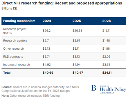 ¹¹ National Institutes of Health (NIH). 2025. “Congressional Justification for FY 2026 Budget.” https://officeofbudget.od.nih.gov/pdfs/FY26/NIH%20FY%202026%20CJ%20Overview.pdf.
